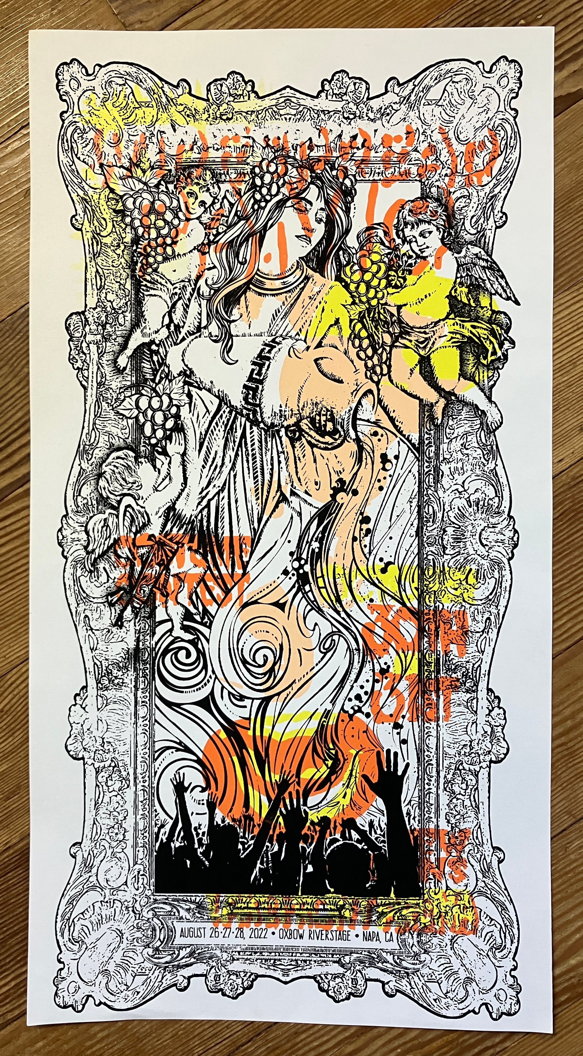 Test prints are artifacts of the screen-printing process. Their original function varies from sampling the tone or opacity of ink, verifying registration or to simply clear ink from the screen at the end of the print-run. Because these prints begin their lives as by-products they are not treated as precious items. Discarded by some and cherished by others, a test print evolves from a utilitarian tool into an unreproducible mono-print that is sometimes numbered 1/1 or marked TP to reflect the unique quality of the finished piece of art.