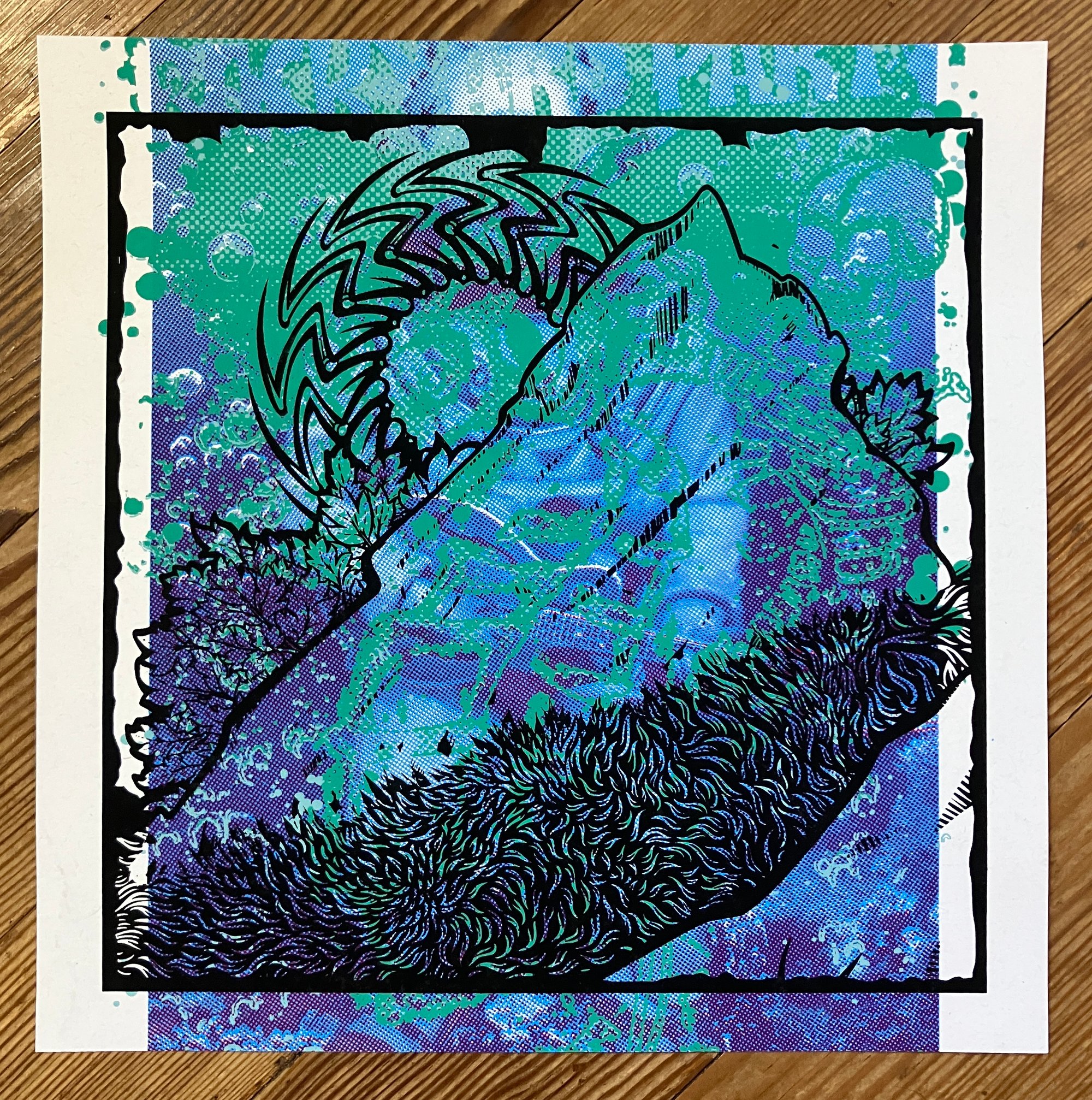 Test prints are artifacts of the screen-printing process. Their original function varies from sampling the tone or opacity of ink, verifying registration or to simply clear ink from the screen at the end of the print-run. Because these prints begin their lives as by-products they are not treated as precious items. Discarded by some and cherished by others, a test print evolves from a utilitarian tool into an unreproducible mono-print that is sometimes numbered 1/1 or marked TP to reflect the unique quality of the finished piece of art.
